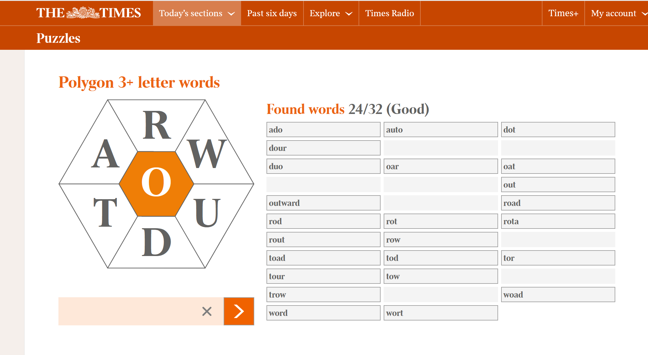 I was outraged to find that the word “trod” is not permitted in The Times’ Polygon puzzle. They allow ridiculous non-words like “lite” but refuse perfectly good words.